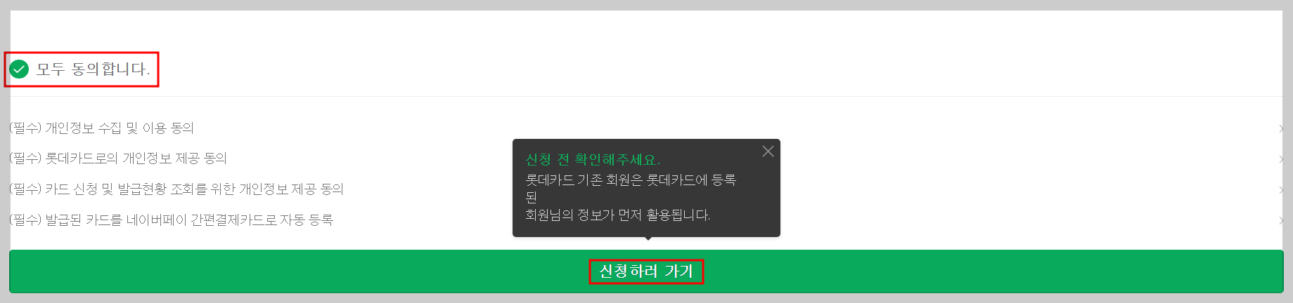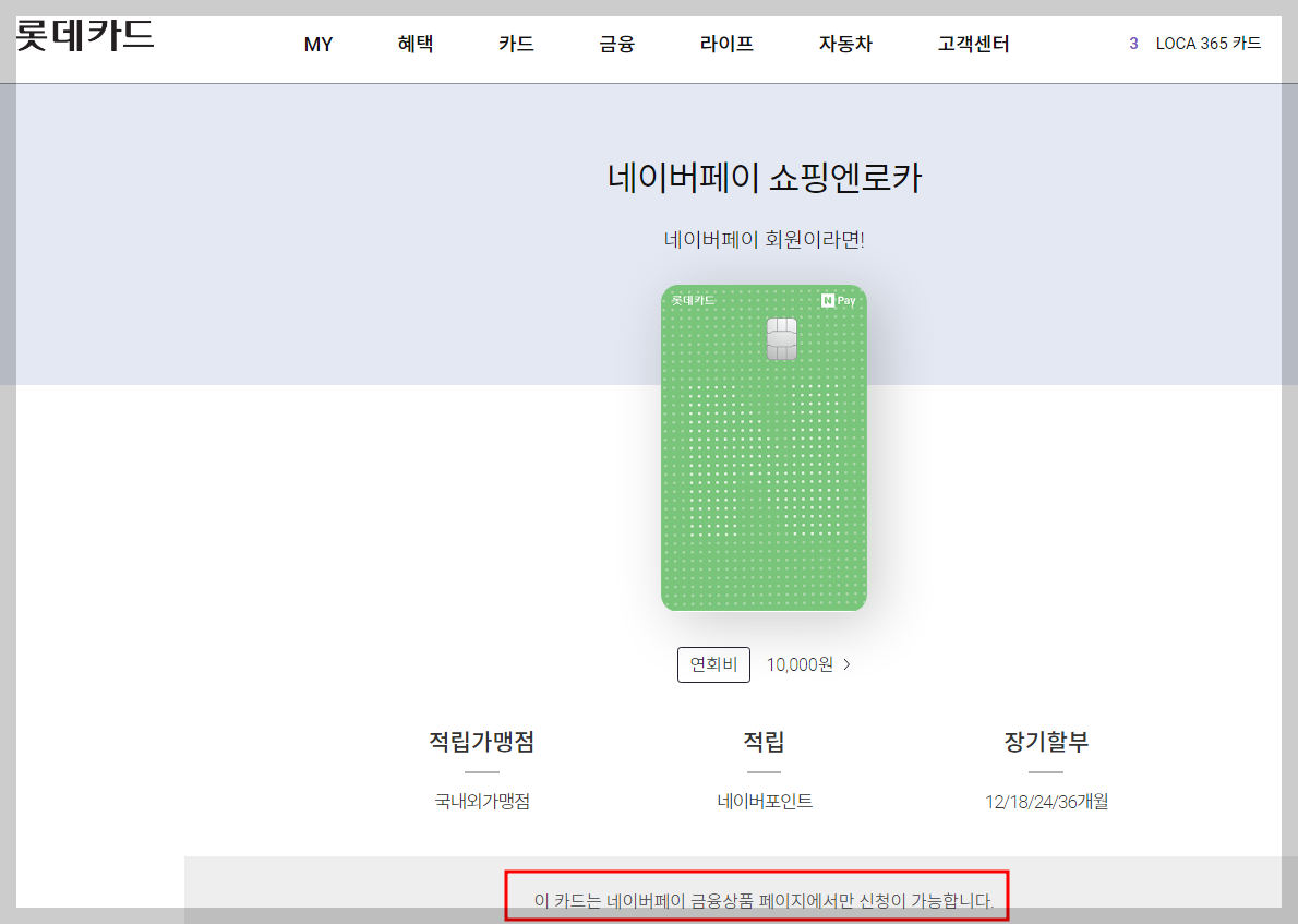 참고 : 롯데카드 홈페이지에서는 카드 신청이 되지 않습니다. 네이버페이 금융상품 페이지에서만 신청이 가능합니다.