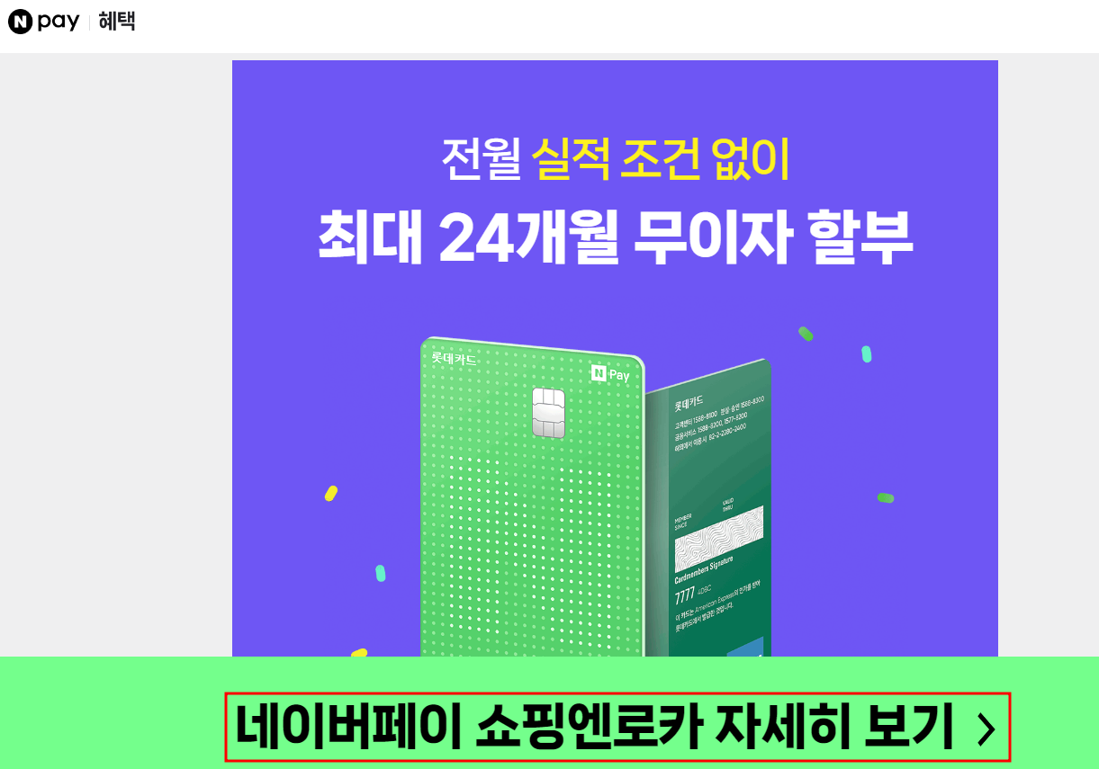 네이버페이 제휴 카드 중에서도 특히 눈에 띄는 혜택을 제공하는 '쇼핑엔로카 롯데카드'에 대해 알아보려고 합니다. 특히 이 카드는 36개월 장기할부가 가능하다는 점에서 많은 이들에게 관심을 받고 있습니다.